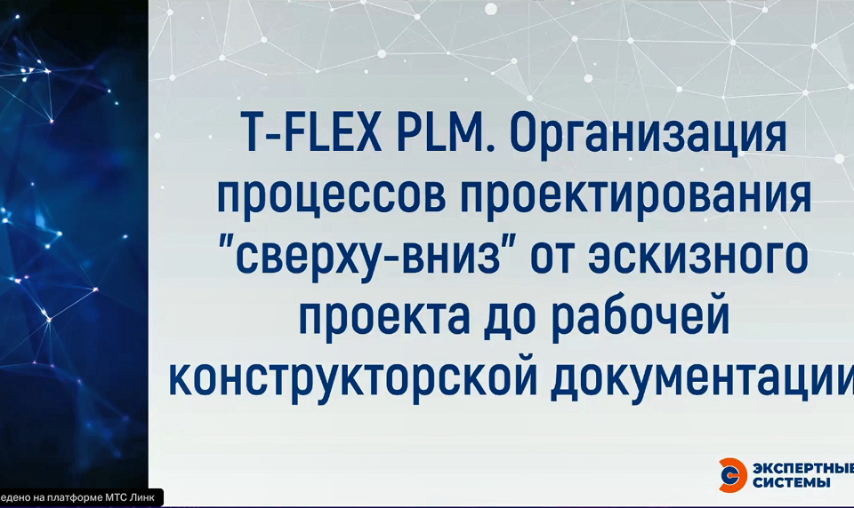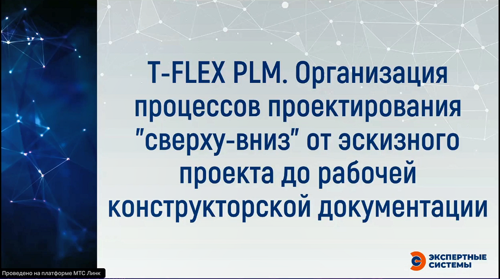 Компания ООО «Экспертные системы» 11.12.2025г. провела вебинар «T-FLEX PLM. Организация процессов проектирования "сверху-вниз" от эскизного проекта до рабочей конструкторской документации».